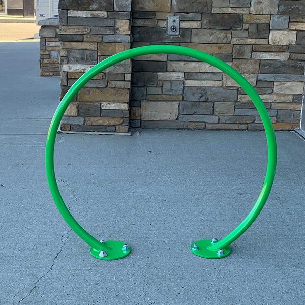 The Circle 33 Rack is a stylish and practical bike parking solution that is both colorful and informal, this bike rack easily melds into a playground, park or plaza setting. Its playful design and straightforward functionality offer secure parking for two bicycles.