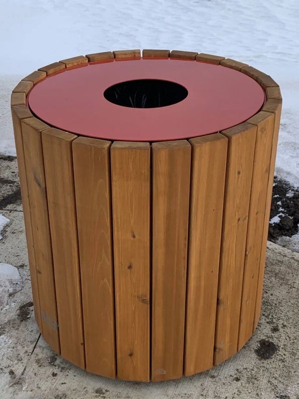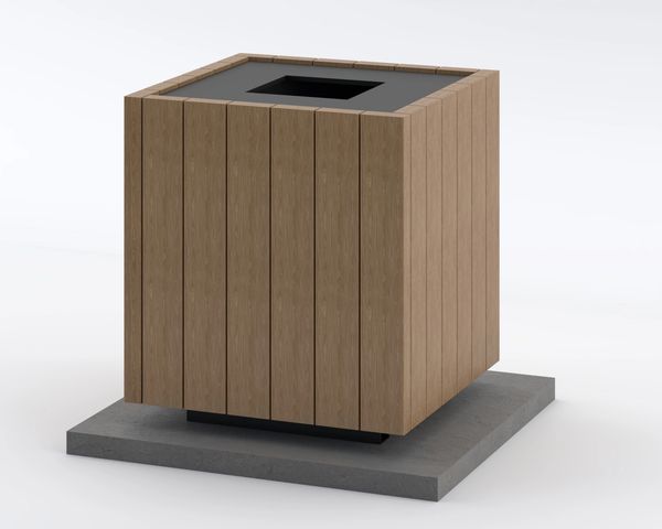 This waste container is an attractive complement to our bench and table and other site furniture.